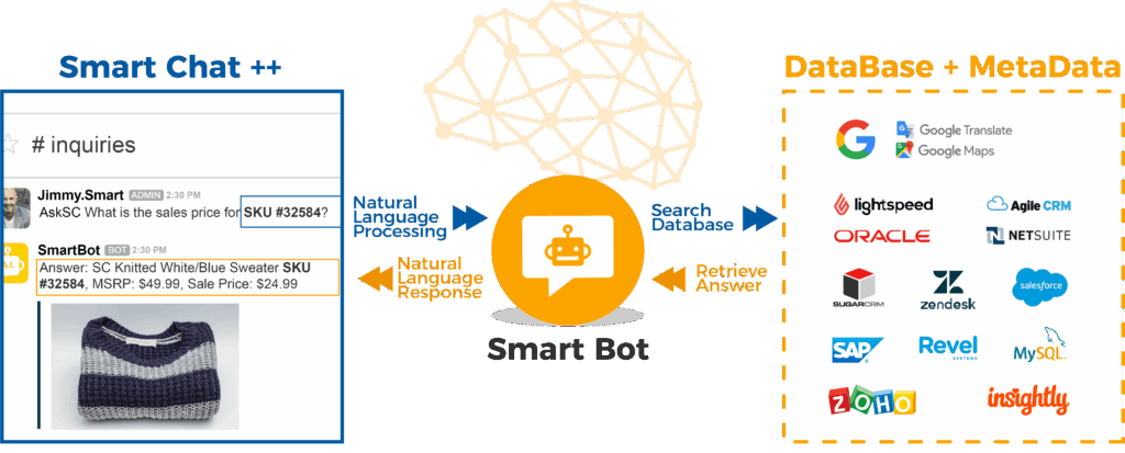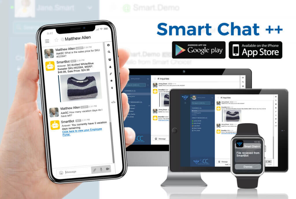 Artificial Intelligence (A.I) is the simulation of human intelligence by machines. Today, A.I. can be used as an innovative business technology that completes simple and complex tasks automatically, helping to free up time and help your business grow. A.I.’s natural language processing lets it interpret what you speak, type, or ask. Through advanced algorithms and machine learning, A.I. searches multiple queries to deliver the best answer in seconds, and can automate functions that provide powerful insights by tracking patterns, trends and other analytics. Smart Bot is integrated within Smart Chat++ providing immediate answers to allow for more time to complete important projects and tasks, resulting in a more productive work environment. Ask Smart Bot a question in a channel or direct message and instantly be provided with an answer. The program works by utilizing information from multiple databases along with advanced algorithms to provide you with the best answer possible.