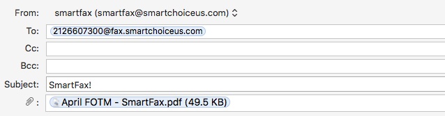 Sending an email is as simple as creating a new email, then entering the fax number followed by: @fax.smartchoiceus.com. For incoming faxes, documents are received in your inbox as a PDF attachment. You can even use your Optical Character Recognition (OCR) software to convert documents to editable text for your convenience.