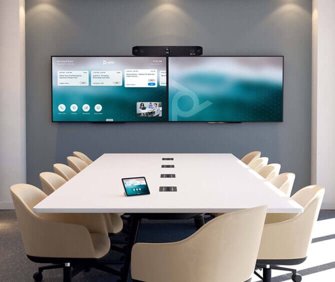 Poly Studio X70 is a beautifully engineered, premium videoconference solution that combines razor-sharp 4K video with boardroom filling stereo sound for simply the best meeting experience available. With a sleek all-in-one plug-and-play design, the Poly Studio X70 eliminates tangled cables and IT headaches while providing robust audio and video. Enjoy native support from your choice of video-as-a-service platforms — no PC needed. Its AI driven video and audio experience enables the Poly Studio X70 to turn any large-room video call into a hassle-free delight.